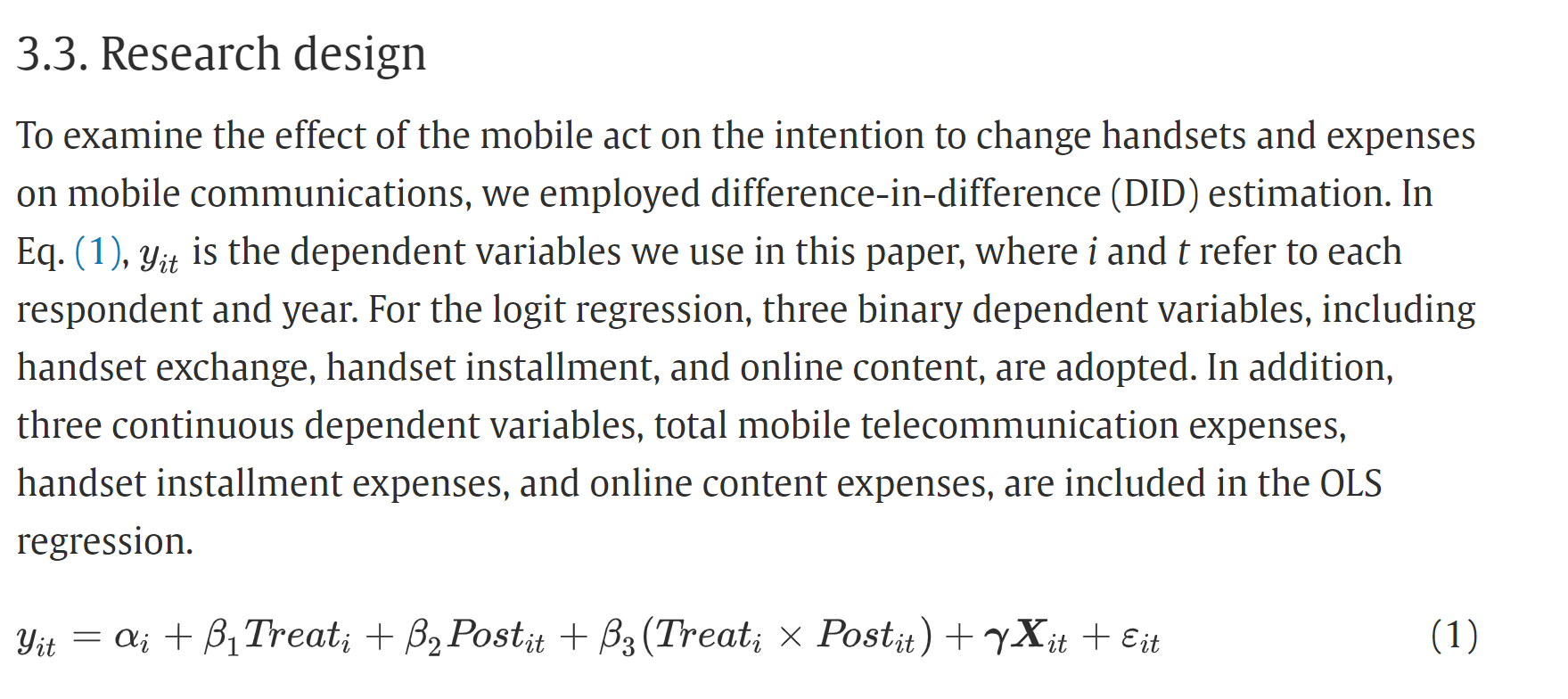 Effect of a Policy Intervention on Handset Subsidies on the Intention to Change Handsets